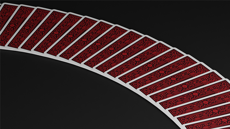 The contrasting red and black pattern combined with a custom Ace of Spades and matching jokers commands attention. You'll also love how the semi-custom pips burst along the waves of each spread like tiny little glitches.