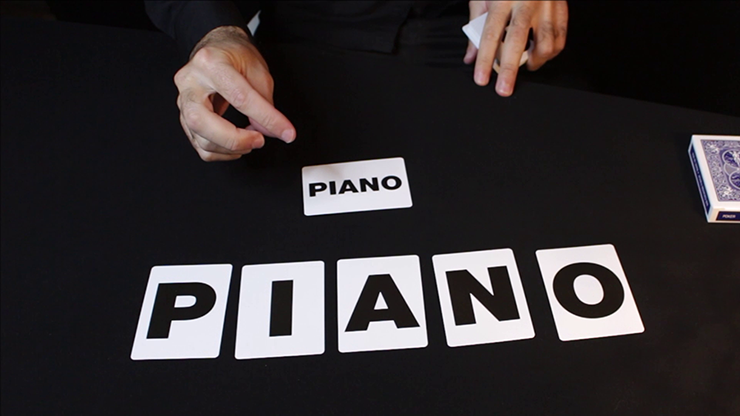 26 in 1: You present your spectator with the set of cards with the letters and then the spectator chooses a card. You then reveal the prediction you have in the case to show that the letter on the spectator's card appears on the prediction card. But this card contains all the letters from A to Z. After a magical gesture the card is transformed to show only the spectator's letter.