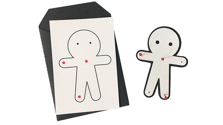 Show an envelope containing a prediction. Then have a spectator select a number of places where they want the pins to be placed. After inserting the pins, the envelope is opened. The prediction shows a figure with markings on those exact same places!!